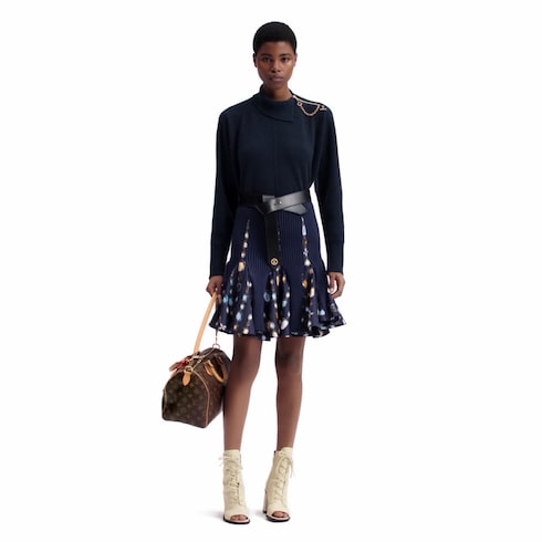 Elegant detailing elevates this timeless pullover with an air of modernity. It is spun from a soft wool-cashmere blend knit with ribbed hems and visible seams adding understated structure to the laidback shape. The casual flat collar is twisted over one shoulder for an asymmetrical look, complete with the House’s signature zipper-and-chain embellishment.