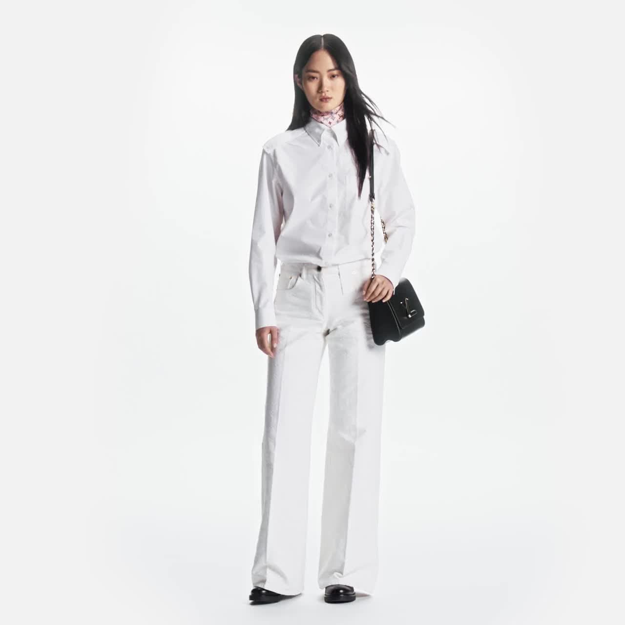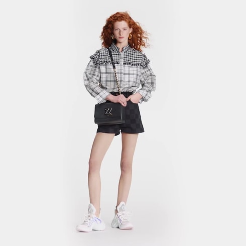Crafted from the House’s emblematic Epi leather, the Twist MM chain bag features the now-iconic LV Twist lock. The Twist MM handbag is reinterpreted in a monochromatic colorway of black on black. Fashioned from black Epi leather, the bag has a LV turn-lock finished in matte tone-on-tone lacquering. Soft leather is braided into the metallic links of the chain strap for unexpectedly sophisticated look. An adjustable shoulder pad in leather assures comfortable carry.