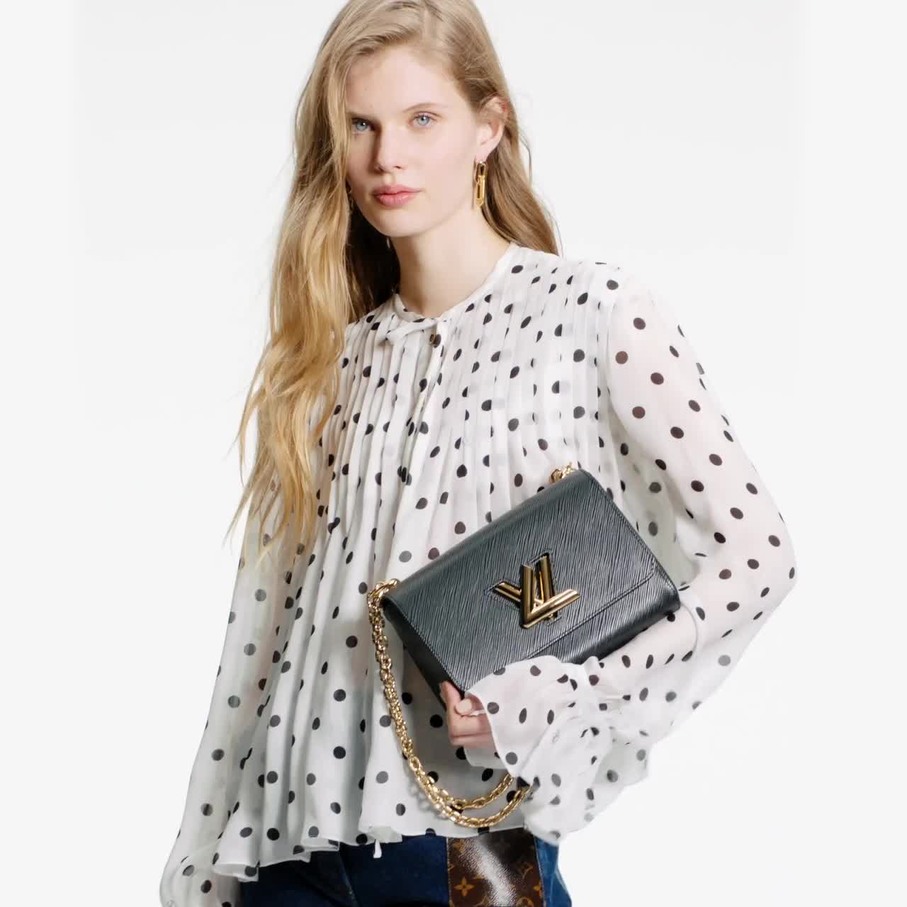 Crafted from the House’s emblematic Epi leather, the Twist MM chain bag features the now-iconic LV Twist lock, a sculptural signature in gleaming golden metal. Unexpectedly roomy thanks to the cleverly designed “wave” base, this beautifully made bag is a fashionable day-to-evening companion. The sliding chain strap can be doubled for shoulder carry or lengthened for cross-body wear. A New Classic of the House, the Twist bag was introduced at the 2015 Cruise show.