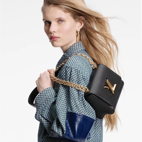 This Twist PM chain bag in grained Epi leather is accented with the now-iconic LV Twist lock, a sculptural signature in gleaming gold metal. Compact but surprisingly roomy thanks to the cleverly designed “wave” base, this beautifully crafted piece is a fashionable day-to-evening companion. The sliding chain strap can be doubled for shoulder carry or lengthened for cross-body wear. A New Classic of the House, the Twist bag was introduced at the 2015 Cruise show.