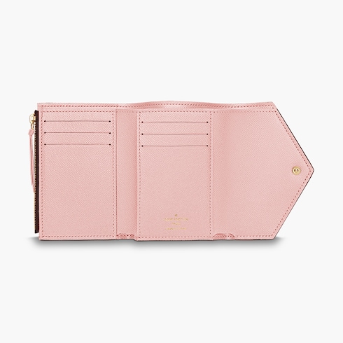The compact Victorine wallet in Monogram canvas combines femininity and functionality. It opens out to reveal many practical features, including card slots and pockets for bills and coins. Its envelope-style flap is sealed with a press-stud.