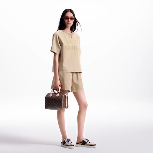 This T-shirt has effortless everyday appeal in thick cotton jersey cut in a casual boxy fit. An overdyed finish introduces a vintage vibe, which is underscored by the large faded-effect Louis Vuitton signature on the chest. An LV chain embellishment adds a chic House touch to the neckline.