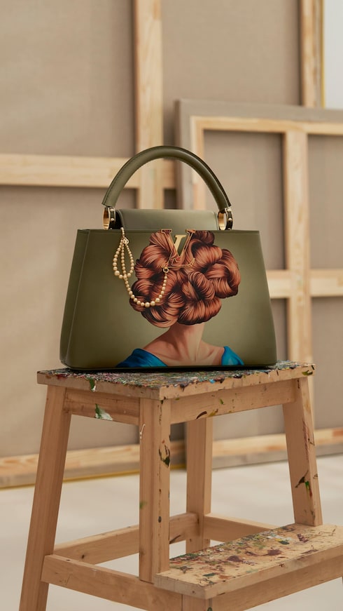 Hand-sprayed onto smooth leather, the gradated green background mirrors the original oeuvre to showcase the vibrant portrait, its details captured and reproduced in ultra-high definition using an innovative 3D printing technique, which was also employed to camouflage the iconic LV signature. “I wanted the bag to reflect the essence and character of my paintings. By combining various techniques and materials, like the hand-dyed leather and multilayered printing, the final effect is beautiful and sophisticated.” – Ewa Juszkiewicz