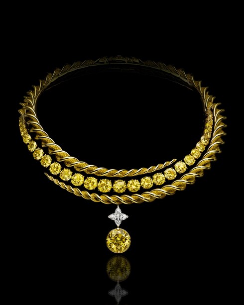 The radiant apex of brilliance, Eternal Sun is a pure, minimalist design — emancipated from all codes, where the creator expresses himself with unrestrained genius, the epilogue of the collection. A golden spiral twists around 27 exquisite yellow diamonds, centered by an exclusive 3.88-carat LV Monogram Star cut diamond and a magnificent 14-carat round yellow diamond, glowing with uninhibited elegance. It fuses mastery and freedom in an endlessly versatile form — a golden apotheosis of light.