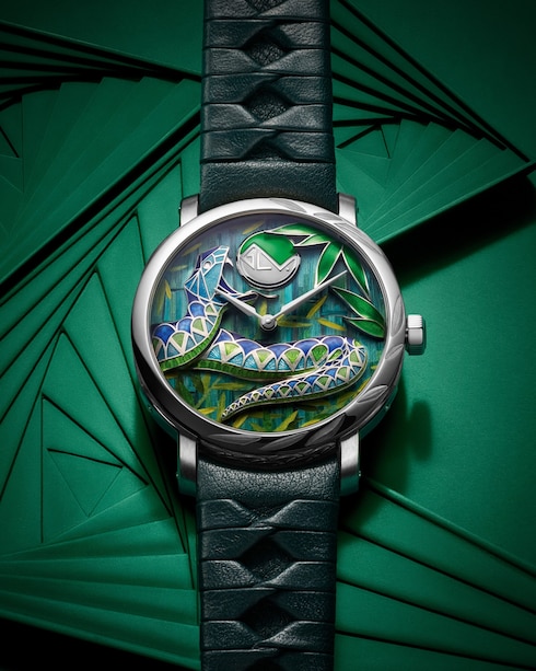 An architectural masterpiece, this visionary creation invites the light to shine through its exceptional dial in a unique play of transparency. Capturing a striking stained-glass effect, the meticulous plique-à-jour enamel dial unveils the skeleton movement adorned with the Poinçon de Genève Seal.
