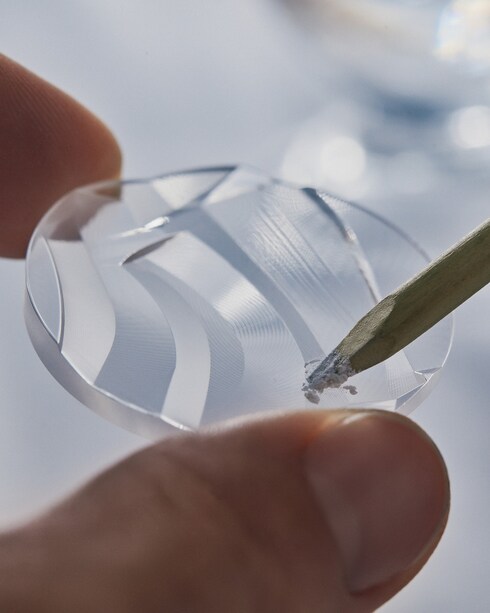 The Tambour Moon Tourbillon Volant Poinçon de Genève is the first watch collection with a sapphire case to bear the Poinçon de Genève stamp, and it has been enriched with two new watches that benefit from the expertise of the artisans at the Fabrique du Temps Louis Vuitton. In just a few years, they have mastered the art of cutting and coloring synthetic sapphire.