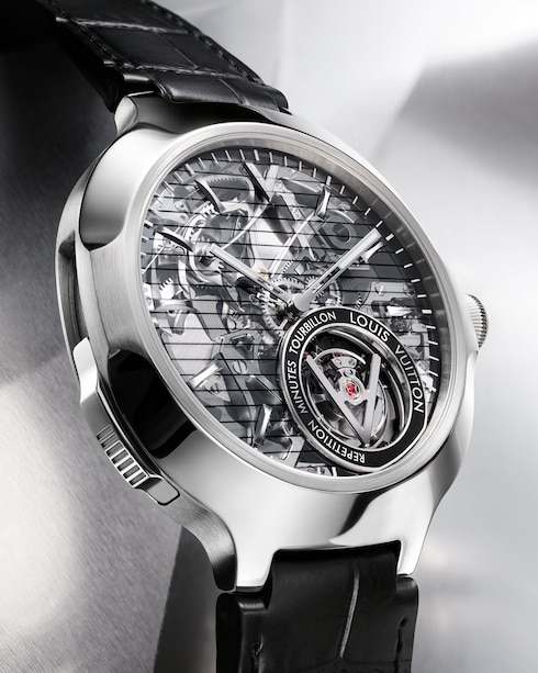 Experience time display reimagined with La Fabrique du Temps Louis Vuitton’s intricate Minute Repeater movement. Masterfully achieved by few, each moment unfolds in both sight and sound, enhanced by the deep, resonant tones of Cathedral gongs.