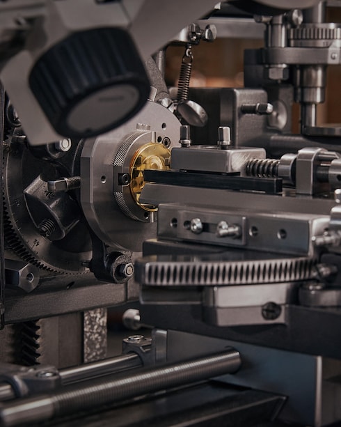A traditional technique of decorative engraving on metal, guilloché reveals the perfect harmony between hand and machine. With the utmost dexterity, the master guillocheur guides the machine to produce linear or geometric patterns of incomparable finesse and consistency, creating subtle plays of light. These distinctive graphic accents are the hallmark of the Manufacture's refined watchmaking creations.