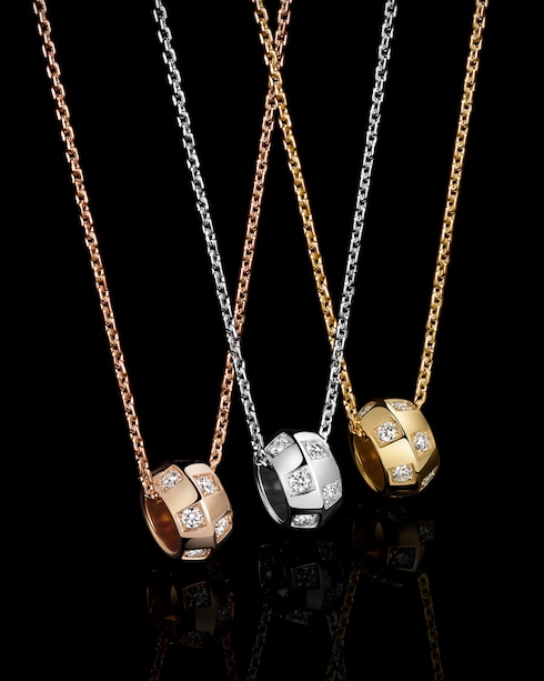 Geometric settings in earrings and pendants unfurl with a hypnotic continuity across white, yellow, or rose gold — emblazoned by the House's cherished iconography.