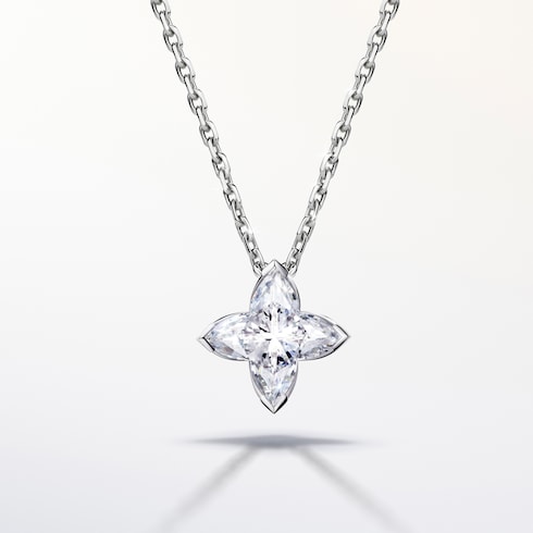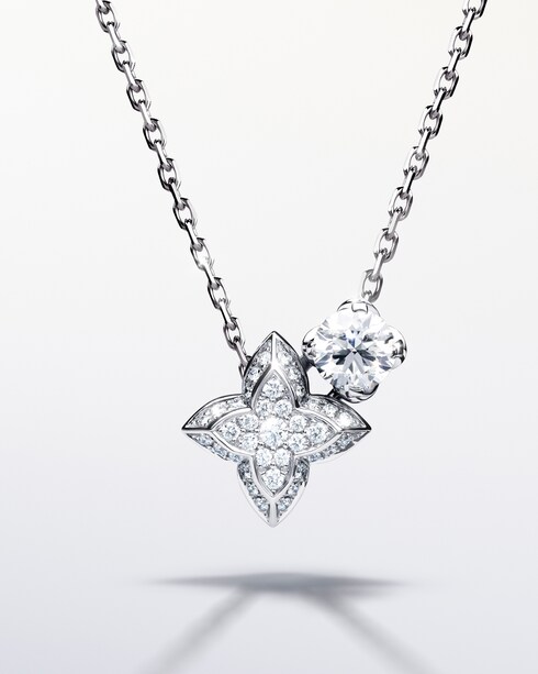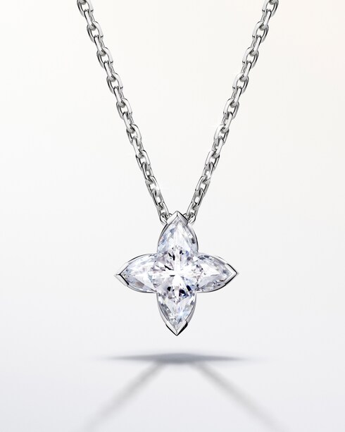 The LV Diamonds pendants and earrings celebrate life’s most precious moments. Inspired by the iconic Monogram Flower, each piece is brought to light through the signature LV Monogram Star cut diamond — its singular radiance capturing the depth of every emotion.