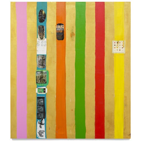 Born in 1954 in Washington D.C, Chris Martin lives and works between Brooklyn and upstate New York. He is known for his colorful large scale paintings which alternate between figuration and abstraction. Speed and directness characterize Martin's painting process, in which it is not uncommon to find traces of his tactile imprints or footsteps on the canvases.
