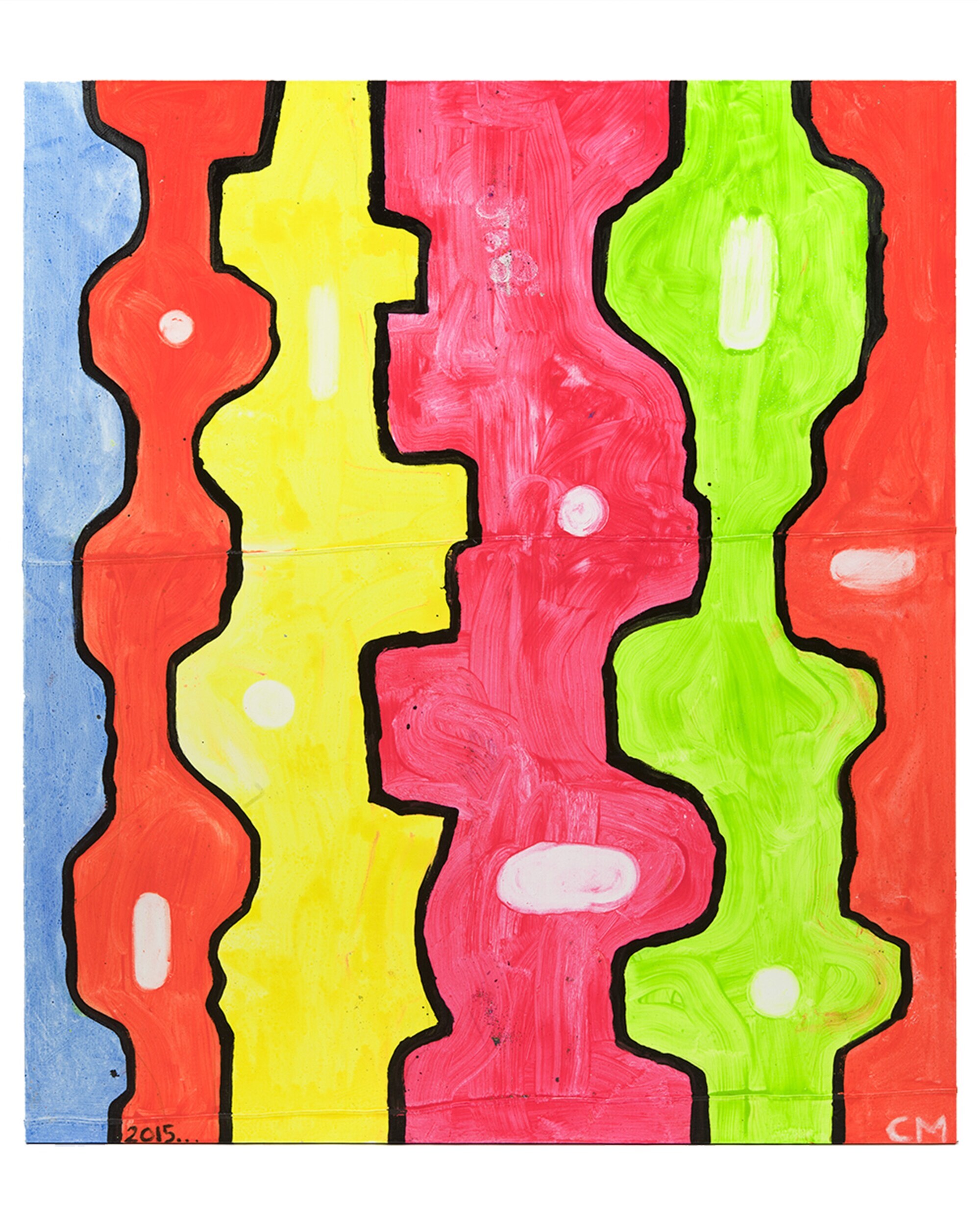 Born in 1954 in Washington D.C, Chris Martin lives and works between Brooklyn and upstate New York. He is known for his colorful large scale paintings which alternate between figuration and abstraction. Speed and directness characterize Martin's painting process, in which it is not uncommon to find traces of his tactile imprints or footsteps on the canvases.