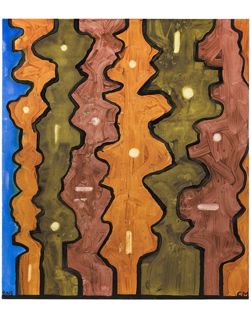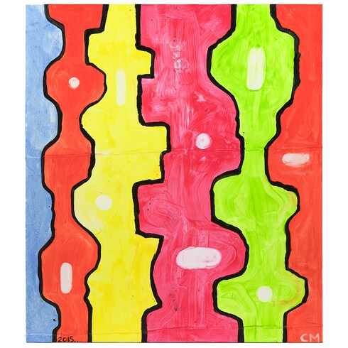 Born in 1954 in Washington D.C, Chris Martin lives and works between Brooklyn and upstate New York. He is known for his colorful large scale paintings which alternate between figuration and abstraction. Speed and directness characterize Martin's painting process, in which it is not uncommon to find traces of his tactile imprints or footsteps on the canvases.