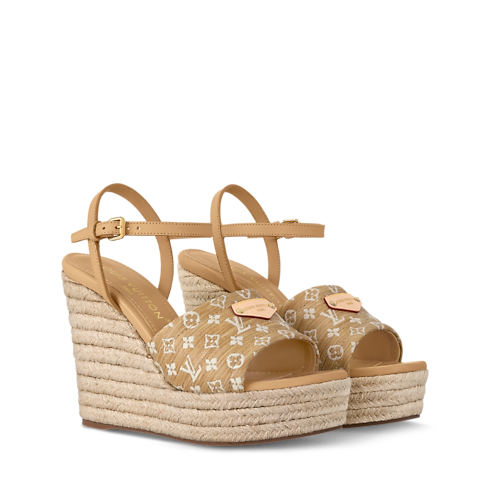 Louis Vuitton’s collection of sandals and espadrilles for women embraces flat, wedge, platform and strappy models. Opt for the glamour of a high-heeled evening number or the laid-back chic of an espadrille: all these fashionable styles are expertly crafted in Italy and embellished with the Maison’s signature accents.