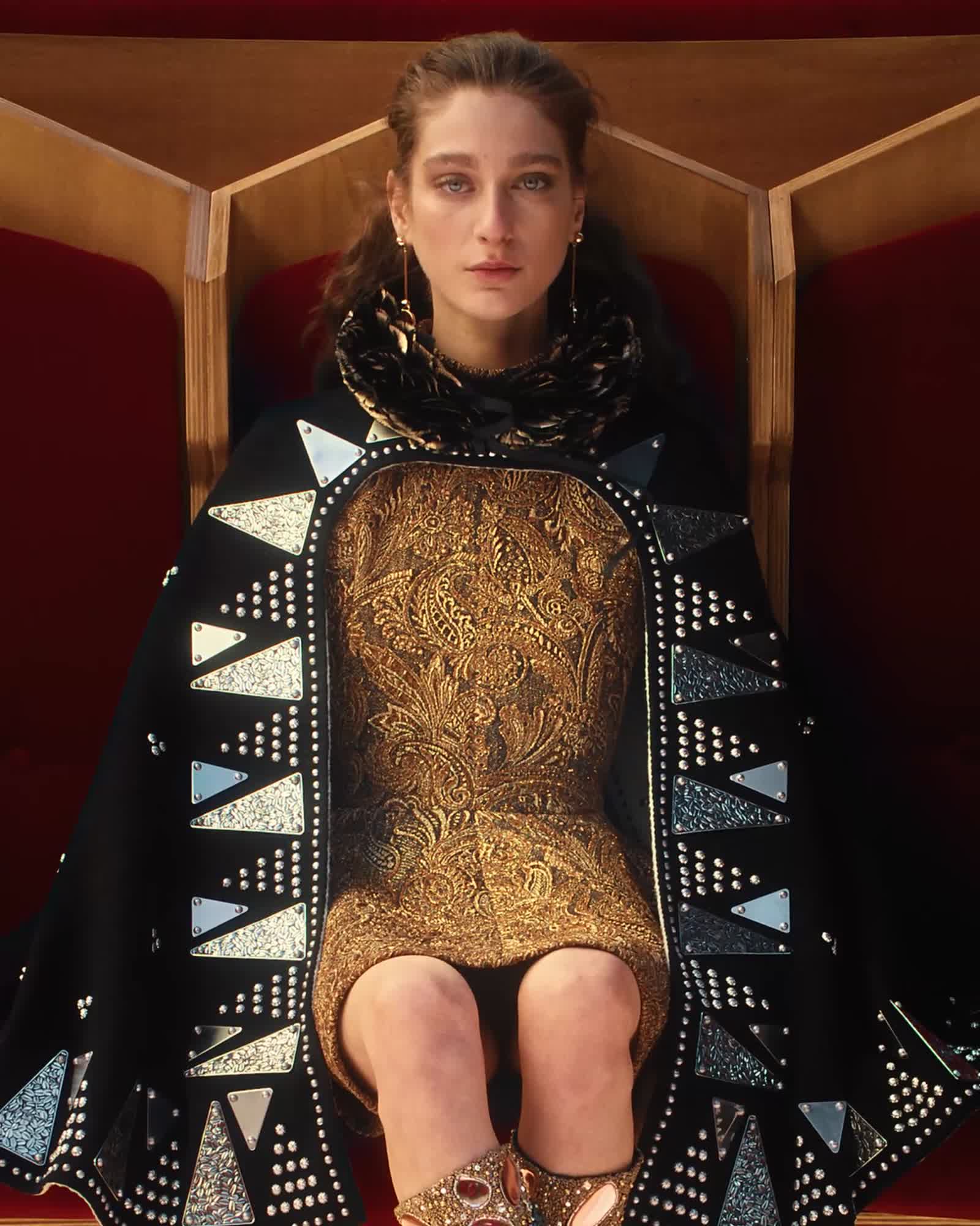 Menggambarkan pertemuan dramatis lintas era, kemegahan Abad Pertengahan beradu dengan gemerlap glam rock dalam tribut Nicolas Ghesquière terhadap seni pertunjukan — diperkuat oleh pesona ikonis para leading women Louis Vuitton.