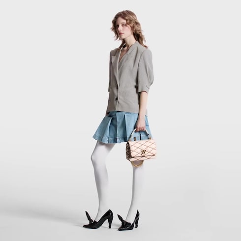 GO-14 MM Malletage handbag edisi ini tampil elegan dalam pergelaran koleksi busana wanita Spring-Summer 2024. Motif crisscross khas koper hard-sided ikonis Rumah Mode dijahit dengan sangat cermat pada material lambskin yang halus dan mewah. Tas ini dilengkapi sentuhan signature berupa LV Twist lock berwarna emas.