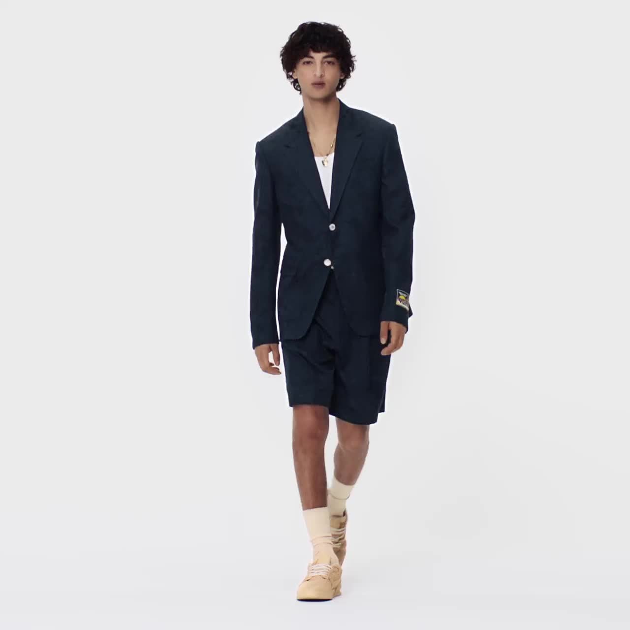Terbuat dari bahan campuran katun mengilap, celana pendek memikat ini menghadirkan inspirasi dari destinasi tropis para peselancar, melalui Monogram Palm Tree jacquard bernuansa senada di seluruh permukaannya. Sementara sentuhan khas berupa patch ‘Marq