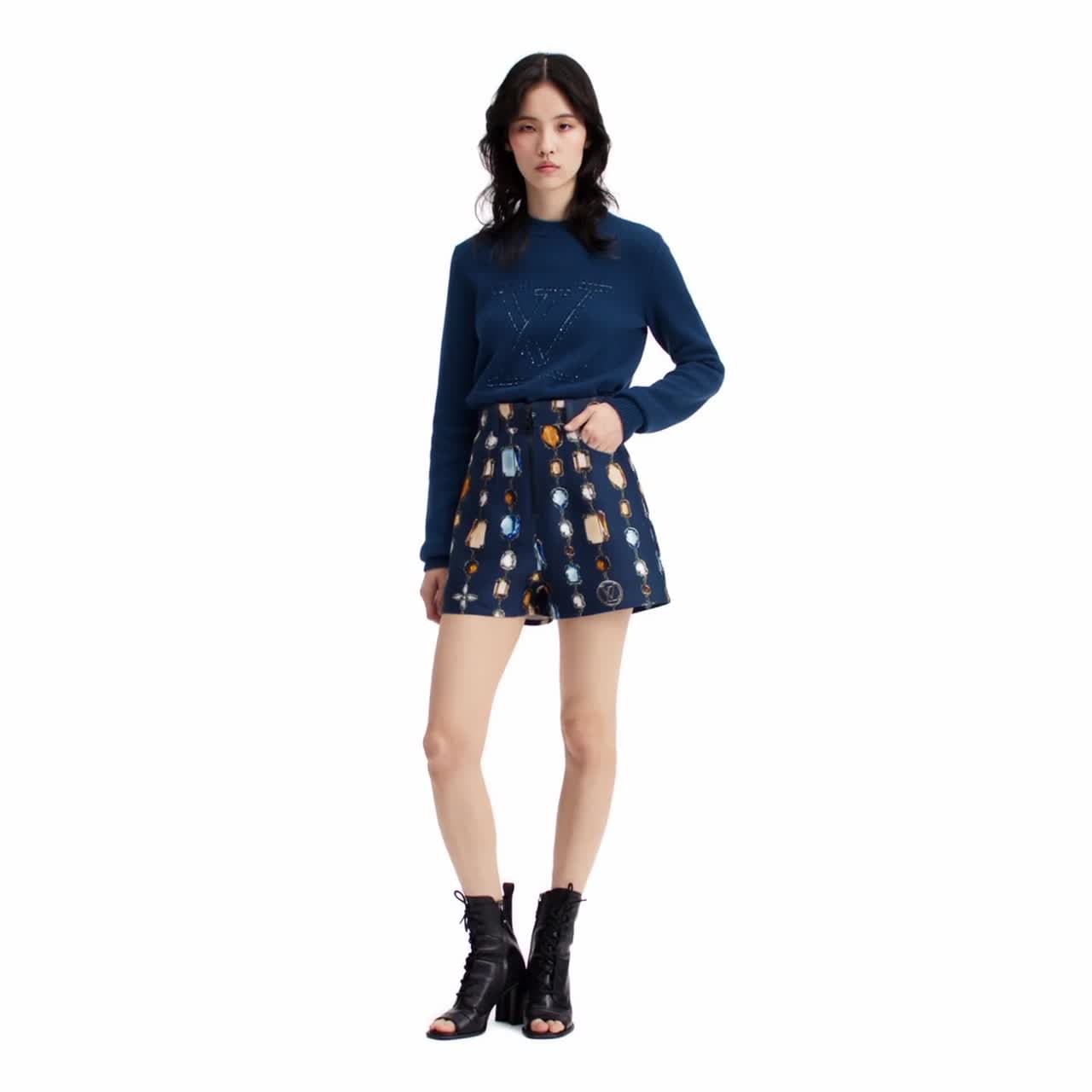 Pullover yang elegan ini dibuat dari rajutan bahan cashmere mewah bernuansa warna klasik. Desainnya yang kasual dan nyaman mudah dipadupadankan, dengan leher bermodel crew neck serta hem beraksen ribbing. Sentuhan berkilap khas Rumah Mode terlihat pada LV Initials berukuran besar di bagian dada, yang dirangkai dari sequin bernuansa senada.