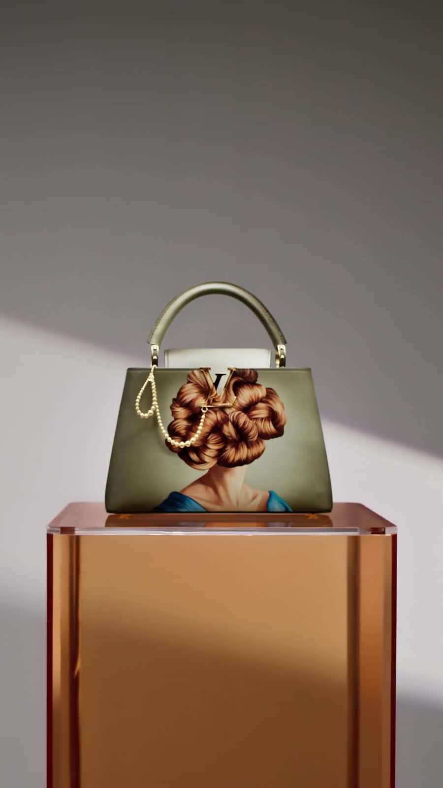 Latar belakang dengan warna hijau bergradasi disemprotkan dengan tangan pada permukaan bahan leather nan halus, mencerminkan karya asli untuk menampilkan potret yang semarak, detailnya ditangkap dan diproduksi kembali dalam definisi sangat tinggi menggunakan teknik pencetakan 3D inovatif, yang juga digunakan untuk menyamarkan LV signature yang ikonis. “Saya ingin tas tersebut mencerminkan esensi dan karakter lukisan saya. Dengan menggabungkan berbagai teknik dan bahan, seperti kulit yang diwarnai dengan tangan dan pencetakan berlapis-lapis, efek akhirnya menjadi indah dan anggun.” – Ewa Juszkiewicz
