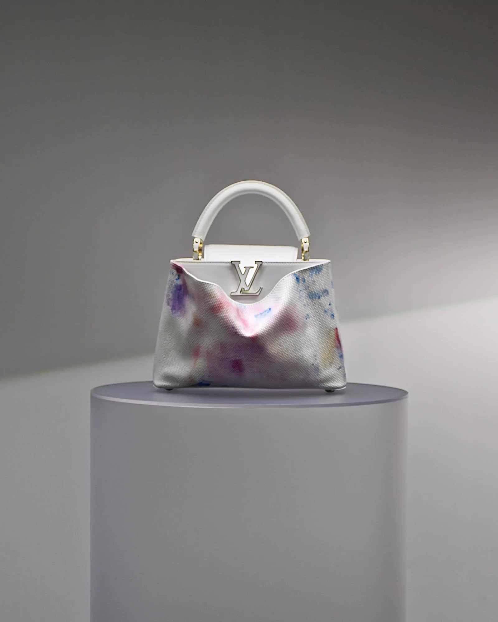 Untuk efek trompe l’oeil, Rumah Mode mengembangkan teknologi baru untuk mengukir pola manik-manik kaca pada kulit yang lentur, membungkus Capucine dengan hati-hati untuk mencerminkan bentuk organik dari karya asli, sekaligus menciptakan kantong eksterior tambahan. “Keahlian konseptual adalah inti dari semua pekerjaan saya. Dengan tim pengrajin di Louis Vuitton, ada kecintaan yang sama terhadap eksperimen dan perhatian yang cermat terhadap detail.” – Lisa Lou